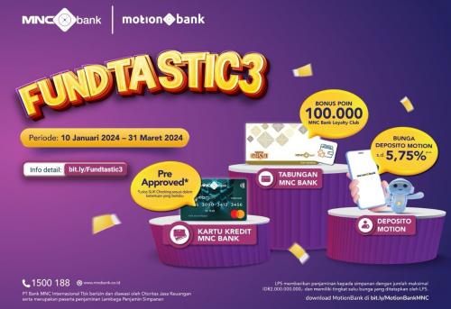 IDXChannel - Dalam rangka memberikan stimulus kepada masyarakat serta manfaat lebih bagi para nasabahnya, PT Bank MNC Internasional Tbk (BABP) atau MNC Bank, anak usaha PT MNC Kapital Indonesia Tbk (BCAP) yang berada di bawah naungan MNC Group (BHIT) menyelenggarakan program FundTastic3.
