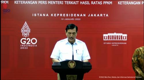 "Berdasarkan assesment 8 Januari terdapat 29 aglomerasi yang kembali ke level 1 daerah Jawa-Bali," kata Luhut dalam konferensi pers virtual 'evaluasi PPKM', Senin (10/1/2022).