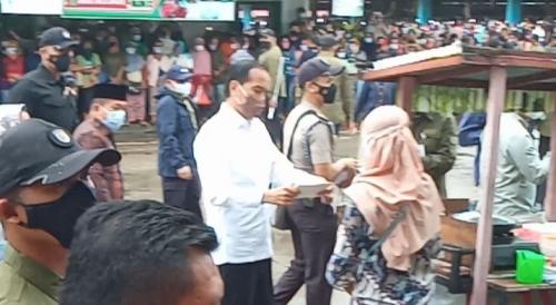 IDXChannel - Presiden Joko Widodo tengah menyerahkan Bantuan Modal Kerja (BMK) dan Bantuan Langsung Tunai (BLT) minyak goreng kepada pedagang Pasar Angsoduo Baru di Kota Jambi.