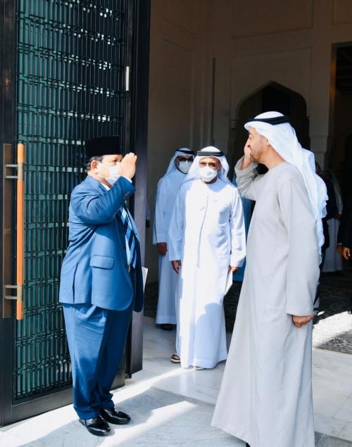 IDXChannel - Menteri Pertahanan RI Prabowo Subianto mendampingi Presiden RI Joko Widodo bertemu dengan Presiden Uni Emirat Arab (UEA) Sheikh Mohamed bin Zayed bin Sultan Al Nahyan di Istana Al Shatie, Abu Dhabi, Jumat (1/7/2022).