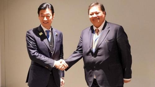 IDXChannel - Menteri Koordinator Bidang Perekonomian Airlangga Hartarto melakukan pertemuan bilateral dengan Menteri Ekonomi, Perdagangan dan Industri Jepang, atau Minister of Economy, Trade and Industry of Japan (METI) Yasutoshi Nishimura pada Jumat (26/5/2023).