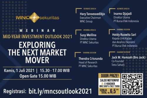 Hal-hal itulah yang perlu dicermati para investor untuk membaca arah pasar ke depan. Untuk itu MNC Sekuritas akan menggelar webinar edukasi pasar modal Mid-Year Investment Outlook 2021 pada hari ini, Kamis (01/07/2021) pukul 15.30 – 17.00 WIB. Webinar ini mengangkat tema "Exploring the Next Market Mover".