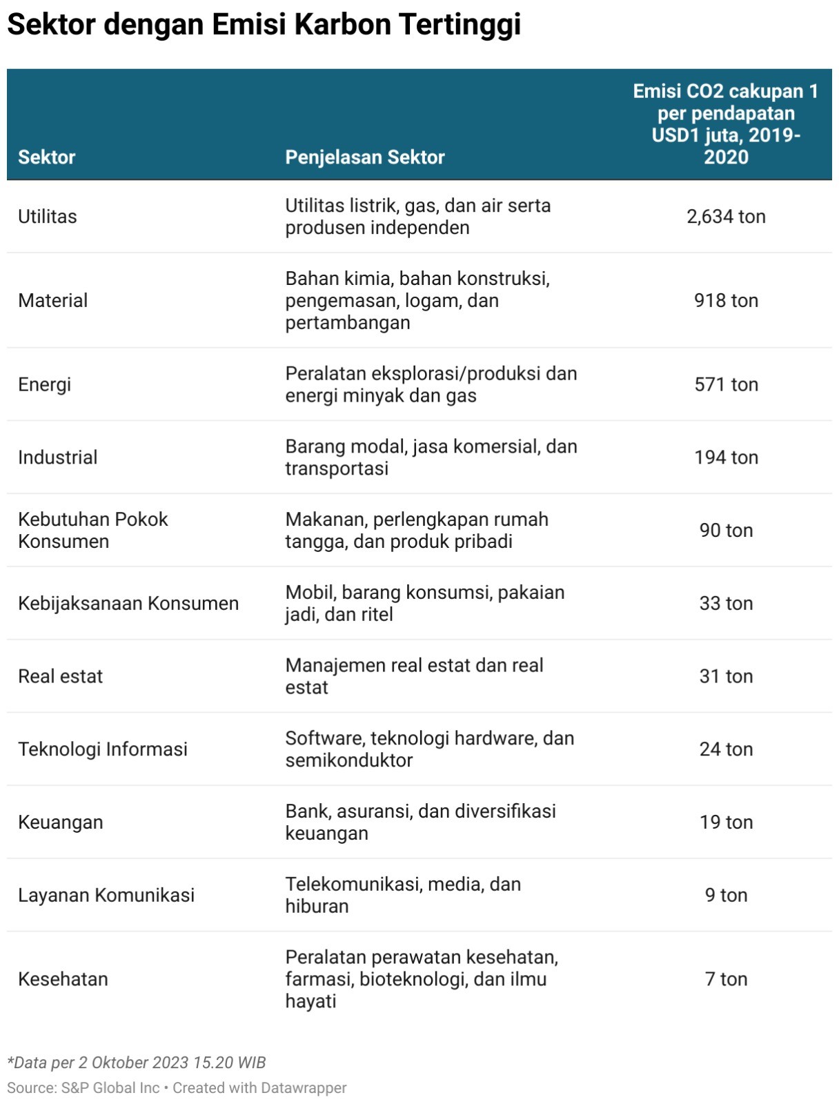 Perusahaan utilitas merujuk pada pelayanan yang diberikan oleh perusahaan yang dikonsumsi oleh publik seperti gas alam, air, listrik, transportasi dan sebagainya. Perusahaan utilitas menjadi bisnis yang paling intensif karbon di dunia, dengan emisi sebesar 2.634 ton CO2 per USD1 juta pendapatan atau setara dengan Rp15,5 miliar (kurs Rp15.500 per dolar).