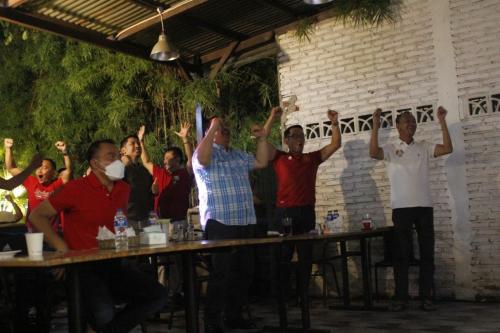 "Semua yang hadir di sini saya traktir," ujar Ridwan Kamil melalui pengeras suara yang langsung disambut riuh seluruh warga yang hadir di tempat nobar itu.