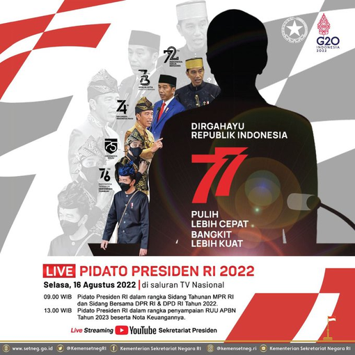 Presiden Jokowi akan menyampaikan dua pidato kenegaraan hari ini, Selasa (16/8/2022).