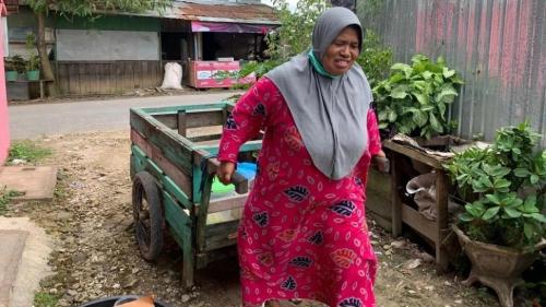 Fahria menjual bungkus demi bungkus nasi setiap pagi dengan berkeliling menggunakan gerobaknya. Walaupun mendapatkan penghasilan yang tak menentu, Fahria tetap berusaha yang terbaik dan selalu bersyukur.