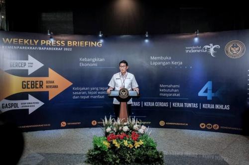 Menteri Pariwisata dan Ekonomi Kreatif/Kepala Badan Pariwisata dan Ekonomi Kreatif, Sandiaga Salahuddin Uno, dalam Weekly Press Briefing di Gedung Sapta Pesona, Jakarta Pusat, Senin (17/1/2022) mengatakan, amanat ini diserahkan Kamboja dalam perhelatan ATF 2022 yang diselenggarakan di Sihanouksville, Kamboja.