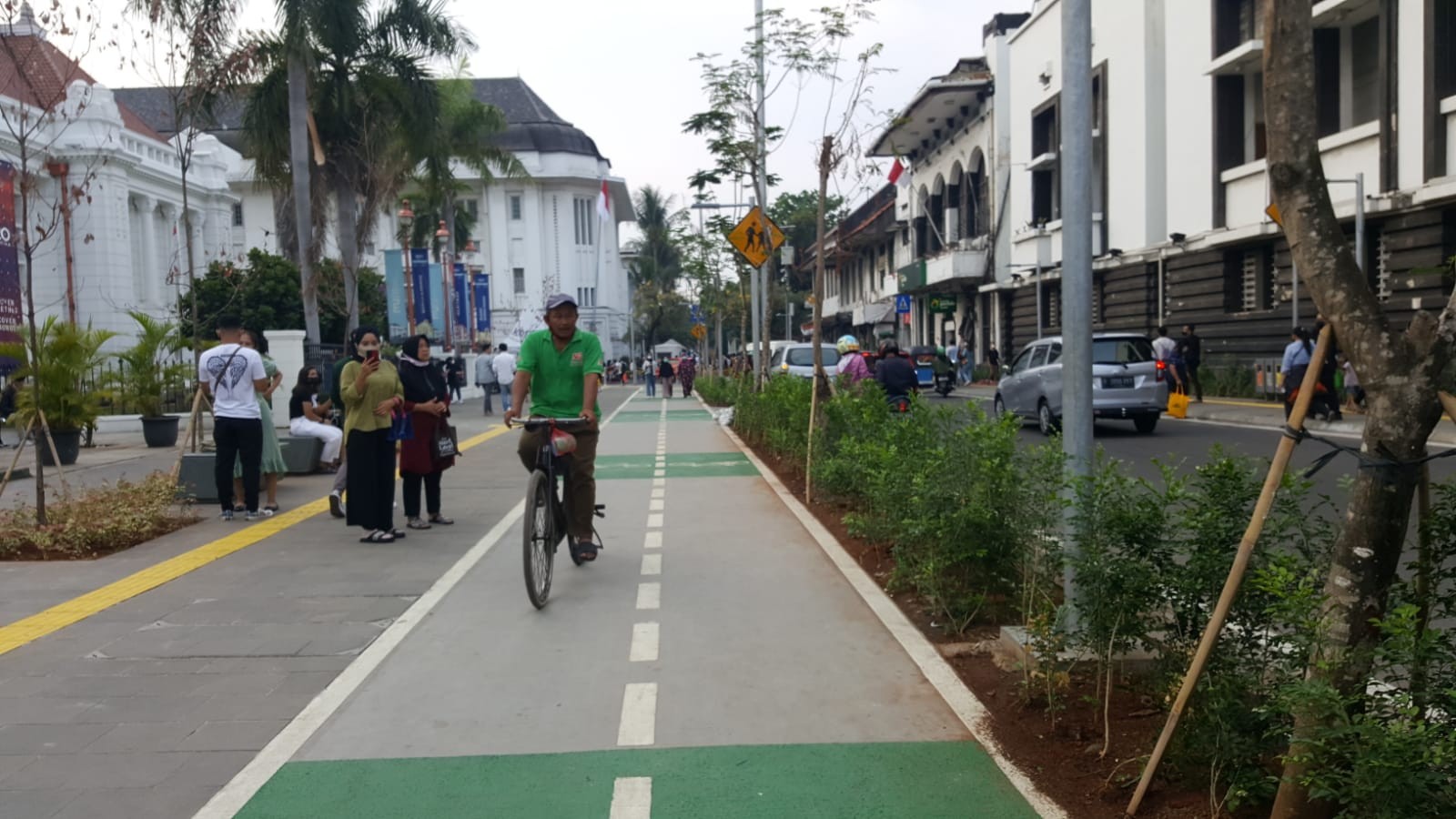 “Saya sih gak masalah jalan satu atau dua kilometer. Saya jadi lebih merasa seperti wisatawan. Area pejalan kaki juga cukup luas dan sudah banyak pohon, meski belum tumbuh lebat,” ungkapnya.
