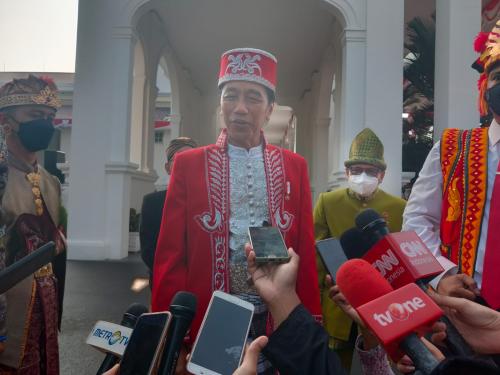 "Ini baju dari Buton, Sulawesi Tenggara," kata Jokowi di Istana Merdeka, Rabu (18/8/2022).