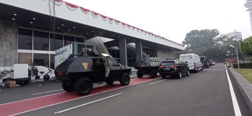 Berdasarkan pantauan di lapangan, sejumlah kendaraan tempus taktis terlihat berjaga di depan Gedung Nusantara, lengkap dengan mobil patroli kepolisian, dan juga ambulans.