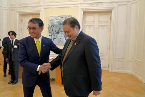 IDXChannnel - Menteri Koordinator Bidang Perekonomian Airlangga Hartarto dan Menteri Transformasi Digital Jepang Kono Taro melakukan pertemuan bilateral di sela-sela Pertemuan Tingkat Menteri OECD Tahun 2024.