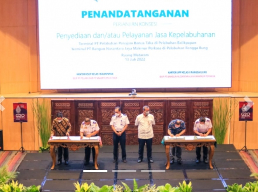 Pemberian hak konsesi ini ditandai dengan acara Penandatanganan Perjanjian Konsesi antara Kantor Kesyahbandaran dan Otoritas Pelabuhan Kelas I Balikpapan dengan PT Pelabuhan Penajam Banua Taka serta Kantor Unit Penyelenggara Pelabuhan Kelas II Rangga Ilung dengan PT Bangun Nusantara Jaya Makmur Perkasa yang berlangsung di Ruang Mataram Kantor Kementerian Perhubungan, Jakarta, Rabu (13/7).