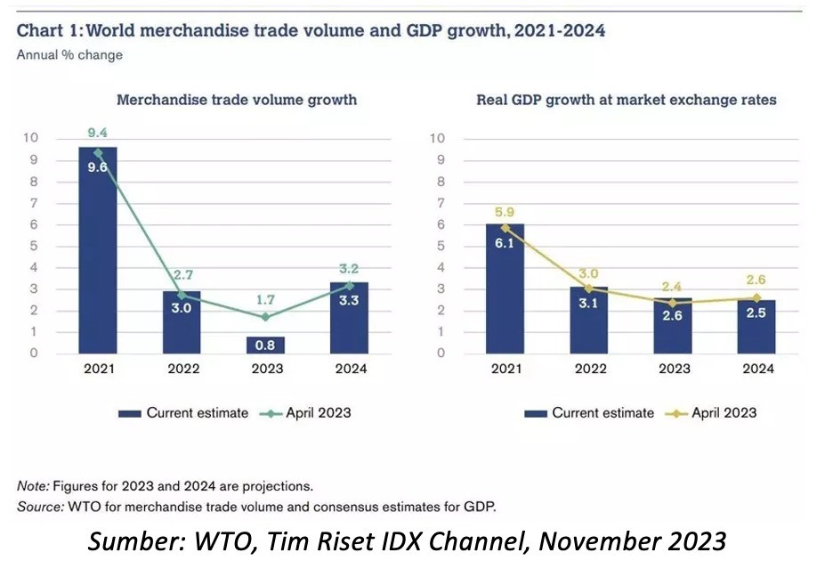 Meningkatnya kekerasan di Timur Tengah juga akan menambah faktor-faktor yang telah menghambat pertumbuhan perdagangan selama ini. Di antaranya termasuk era tingginya suku bunga, guncangan pasar properti China dan ekonominya yang masih belum bangkit, serta dampak perang Rusia di Ukraina yang masih terasa.