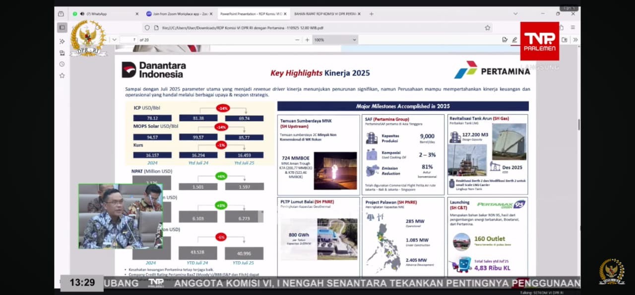 "Hasilnya hingga Juli 2025 Pertamina telah mencatat pendapatan sebesar0 Rp672 triliun, dimana total volume total produksi migas mencapai lebih dari 1 juta barel oil ekuivalen per day (BOEPD), atau satu juta barel setara minyak per hari," ujarnya dalam Rapat Dengar Pendapat bersama Komisi VI DPR RI, Kamis (11/9/2025).
