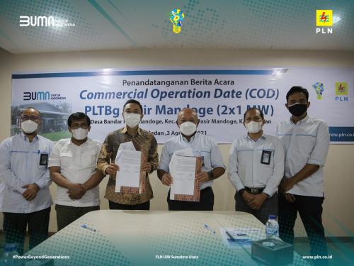 Penandatanganan penanda masuknya pasokan listrik tersebut sudah dilakukan antara managemen PT PLN Unit Induk Wilayah Sumatera Utara dengan PT Karya Mandoge Energi pada Selasa, 3 Agustus 2021 kemarin. Penandatanganan ini merupakan tindaklanjut penandatanganan Surat Perjanjian Jual Beli Tenaga Listrik (SPJBTL) yang dilakukan di Kantor PLN UIW Sumatera Utara pada April 2021 lalu.