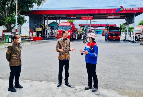 Di Terminal BBM milik Pertamina itu, Presiden Jokowi menanyakan ketersediaan stok BBM.