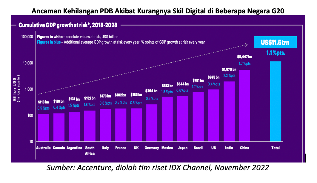 Kondisi ini menyebabkan ancaman bagi ekonomi ke depan. Kekurangan talenta digital diramalkan akan berdampak pada pertumbuhan PDB kumulatif sebesar USD11,5 triliun dalam sepuluh tahun ke depan di ekonomi negara G20.