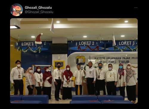 Dalam unggahan fotonya tersebut, nampak Ghozali sedang foto bersama dengan sejumlah orang yang kemungkinan mereka adalah pegawai pajak di Kantor Pelayanan Pajak Pratama (KPP) Semarang Timur.