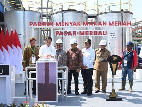 ”Oleh sebab itu, kita bangun pabrik minyak makan merah. Ini yang pertama kali dan ini kita harapkan dapat memberikan nilai tambah yang baik bagi para petani sawit, utamanya yang sudah dalam bentuk koperasi. Jadi, harga TBS (tandan buah segar) tidak naik dan turun karena di sini semuanya diolah menjadi barang jadi yaitu minyak makan merah,” ujar Jokowi.