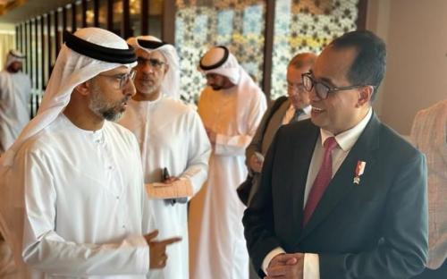 IDXChannel - Menteri Perhubungan (Menhub) Budi Karya Sumadi bertemu dengan Menteri Energi dan Infrastruktur Uni Emirat Arab (UEA) Suhail Mohammed Al Mazroei dan Chief Executive Officer (CEO) Abu Dhabi Airports Sheikh Mohammed, dalam kunjungan kerjanya ke Abu Dhabi, UEA, Sabtu (25/11/2023).
