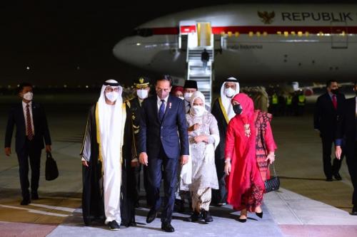 IDXChannel - Presiden Joko Widodo dan Iriana Joko Widodo tiba di Bandar Udara Internasional Abu Dhabi, Persatuan Emirat Arab (PEA) Jumat dini hari, 1 Juli 2022 sekitar pukul 02.15 waktu setempat.