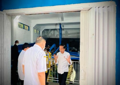 Saat meninjau, Presiden didampingi oleh Staf Ahli Menteri Pekerjaan Umum dan Perumahan Rakyat (PUPR) Bidang Teknologi, Industri, dan Lingkungan Endra S. Atmawidjaja dan Direktur Air Minum, Ditjen Cipta Karya Anang Muchlis.
