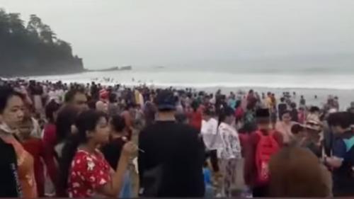 Dalam video, terlihat wisatawan memadati area sepanjang pantai. Mereka bahkan tak mengenakan masker dan menjaga jarak sebagai bentuk protokol kesehatan covid-19.