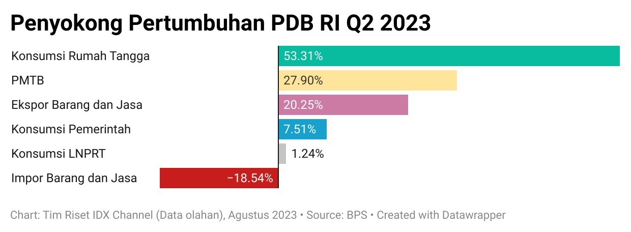 Menurut Deputi Bidang Neraca dan Analisis Statistik BPS Moh. Edy Mahmud, ada sejumlah faktor pendorong pertumbuhan konsumsi rumah tangga pada kuartal II-2023.