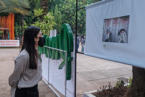 IDXChannel - Wakil Menteri Pariwisata dan Badan Ekonomi Kreatif Angela Tanoesoedibjo mengunjungi gelaran pameran foto bertajuk Rekam Jakarta 24+ di Lapangan Banteng Jakarta.