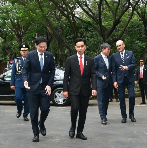 IDXChannel - Wakil Presiden (Wapres) Gibran Rakabuming Raka bertemu PM Singapura Lawrence Wong di Pelataran Hutan Kota, Jakarta Pusat, Rabu (6/11/2024).