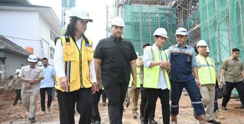 Didampingi Menteri dan Wakil Menteri Pemuda dan Olahraga, Wakil Menteri PUPR serta Pj Gubernur DKI Jakarta, Wapres langsung mengecek progres pembangunan Training Sport Center itu.