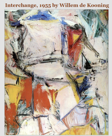 Pada 1989, lukisan itu sudah laku terjual dengan harga fantastis di pelelangan Sotheby, yakni USD20,6 juta. Tanpa bentuk jelas, Interchange dilukis dengan guratan warna dominan biru, merah, kuning, dan oranye.