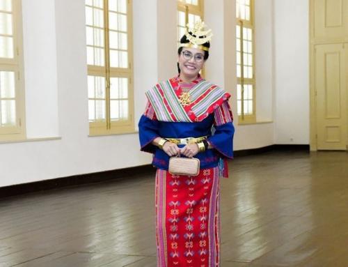 Hadir dalam acara tersebut, Sri menegenakan baju adat Soe, dari Kabupaten Timor Tengah Selatan, Provinsi Nusa Tenggara Timur (NTT).