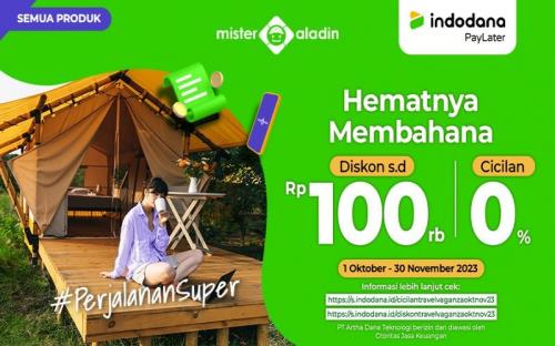 Anda bisa gunakan kode promo INDOTRAVEL untuk mendapatkan diskon atau TRAVELHEMAT untuk menggunakan cicilan 0% saat melakukan transaksi di Mister Aladin menggunakan Indodana PayLater.