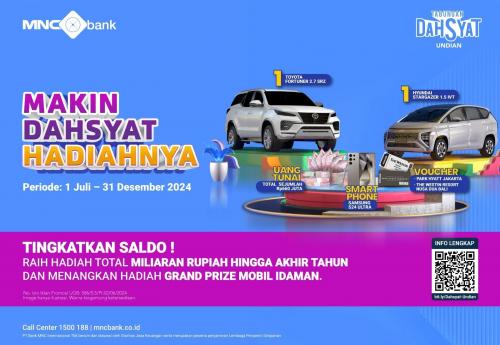 Tabungan Dahsyat Undian merupakan salah satu program tabungan unggulan yang dipersembahkan MNC Bank untuk nasabah, dengan memberikan berbagai hadiah istimewa kepada nasabah yang rutin menabung di MNC Bank.