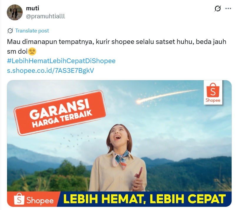 Iklan tersebut juga menjadi perbincangan hangat di media sosial X, dimana banyak warganet yang berlomba membagikan ulang cuplikan iklan favorit mereka. Bahkan hashtag #LebihHematLebihCepatdiShopee juga masuk ke Trending Topic di X pada pagi tadi saat iklan ini diluncurkan.