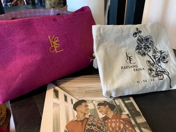 Setelah dibuka oleh IDXChannel di lokasi, Minggu (10/12/2022), isi souvenir tersebut berupa pouch serba guna berwarna pink fanta dengan inisial nama Kaesang dan Erina.