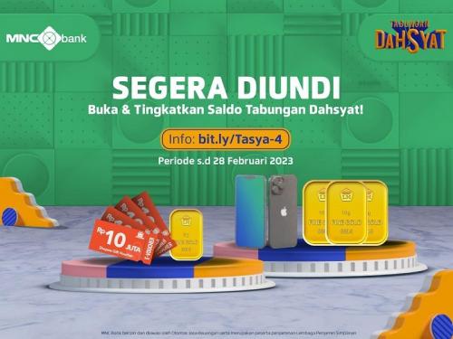 Selain itu, tersedia hadiah bagi masyarakat yang membuka rekening Tabungan MNC Bank dan telah memenuhi syarat ketentuan program. Tertarik untuk bergabung, segera kunjungi link berikut ini: https://mncbank.co.id/post/tabungan-dahsyat-mnc-bank atau hubungan 1500188.