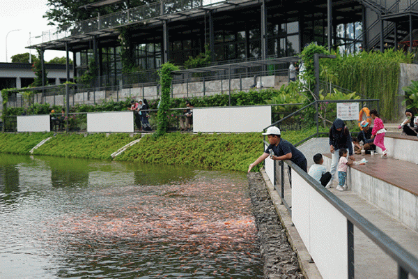 Pengelola juga telah menyediakan bangku di sekitar kolam untuk pengunjung bersantai. Dalam kolam ini, terdapat ratusan ikan koi yang berenang bersama, memberikan kesempatan bagi pengunjung untuk memberi mereka makan, sebuah kegiatan yang pasti akan menyenangkan, terutama bagi anak-anak. Pakan ikan tersedia untuk dibeli di tempat atau pengunjung juga dapat membawanya sendiri.