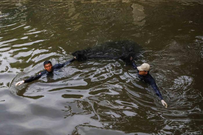 Proses penangkapan dilakukan secara manual. Petugas menyusuri saluran, menjaring ikan, lalu mengumpulkannya ke dalam karung sebelum dibawa ke lokasi pemusnahan yang berjarak sekitar 50 meter dari titik penangkapan.
