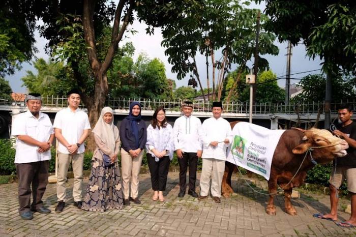 IDXChannel - Chief Human Capital Officer ACC Matilda Esther, Corporate Strategic, Communication dan ESR Division Head Riadi Prasodjo, Corporate Secretary dan Counsel Division Head Bagus Dwiantho, Unit Usaha Syariah Head Wisnu Wardhana, Dewan Syuro Majelis Taklim Moh. Anshori serta Kasie Kesra Kelurahan Tanjung Barat Putri Sakinah berfoto bersama usai penyerah simbolis hewan kurban di Kantor Pusat ACC di Jalan TB Simatupang No.90, Jakarta Selatan, Jumat (14/6/2024).