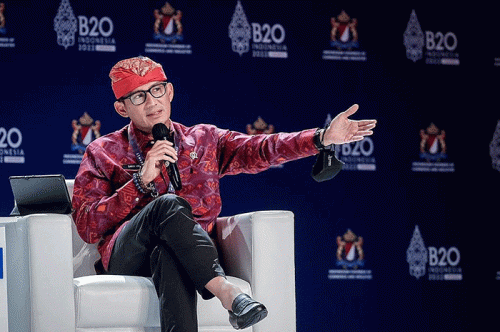 IDXChannel - Menteri Pariwisata dan Ekonomi Kreatif (Menparekraf) Sandiaga Salahuddin Uno turut hadir sekaligus memberikan materi terkait update kebangkitan sektor parekraf Indonesia dalam forum Business 20 (B20) di Bali, Minggu (13/11/2022).