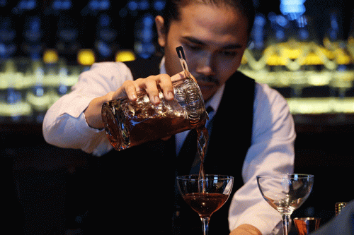 IDXChannel - Aksi para bartender meracik cocktail ketika mengikuti Friendship Indonesian Cocktail Championship 2022, yakni kompetisi kreasi cocktail vodka kopi di JW Marriot Surabaya, Jawa Timur, Kamis (10/11/2022).