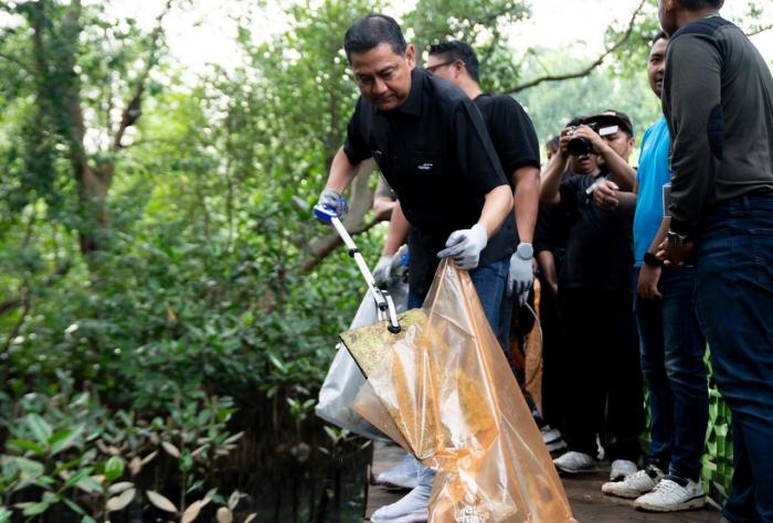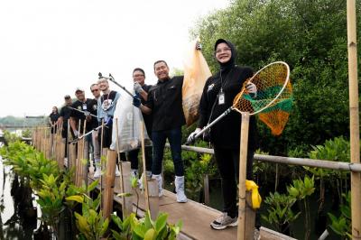 IDXChannel - Senior Executive Vice President (SEVP) M. Wisnu Trihanggodo bersama relawan melakukan Aksi Bersih Mandiri di kawasan Hutan Lindung Angke Kapuk, Jakarta, Jumat (3/10/2025).