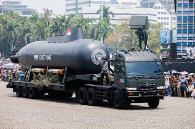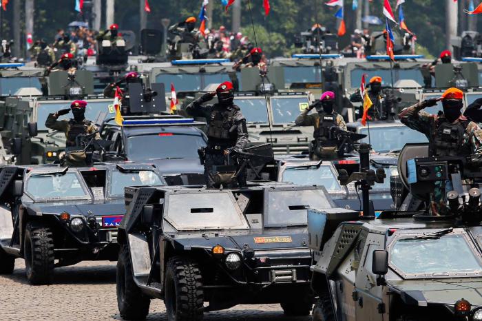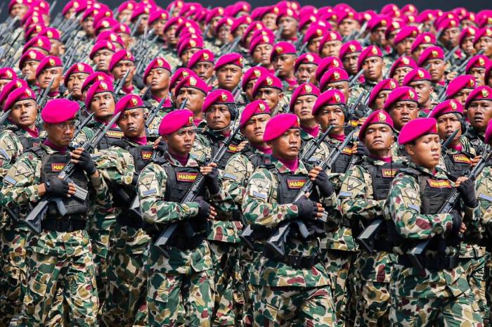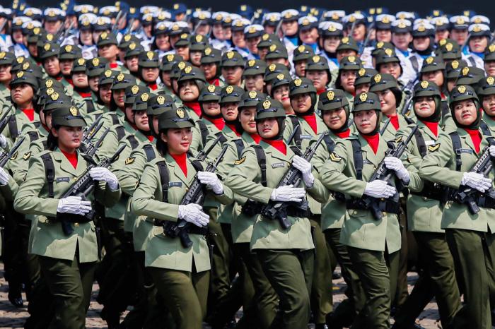 Pasukan dari tiga matra darat, laut, dan udara tampil kompak menampilkan disiplin dan semangat juang tinggi.