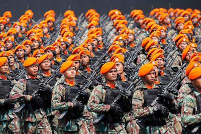 IDXChannel - Ribuan pasukan TNI mengikuti defile dalam perayaan HUT Tentara Nasional Indonesia ke-80 di Monumen Nasional (Monas), Jakarta, Minggu (5/10/2025).