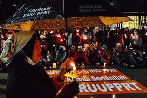 IDXChannel - Para agamawan, tokoh masyarakat, PRT, dan Masyarakat Sipil saat melakukan aksi lilin dan doa bersama agar DPR mengesahkan RUU PPRT sabagai UU PPRT di Jakarta, Kamis (16/3/2023). Aksi yang dilakukan demi Indonesia yang berkemanusiaan dan berkeadilan sosial.
