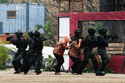 Dalam demonstrasi yang ada, terlihat anggota TNI melakukan berbagai peragaan. Mulai dari panjat tebing hingga operasi penyelamatan sandera dari kelompok teroris. Selain itu, dilakukan juga upaya penyelamatan sandera di dalam kendaraan umum.