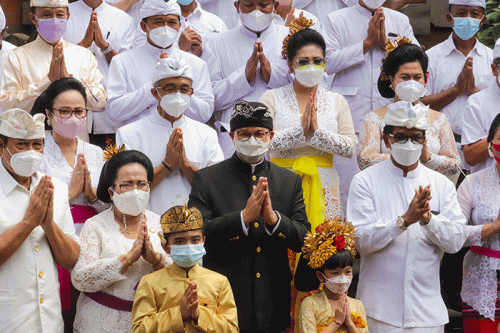 IDXChannel - Gubernur DKI Jakarta Anies Baswedan menghadiri Tawur Agung di Pura Aditya Jaya, Rawamangun, Jakarta Timur, Rabu (2/3/2022).