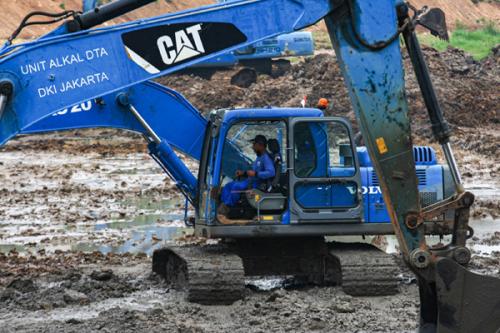 Total 9 alat berat ekskavator diturunkan untuk membantu proses pengerukan lumpur di Waduk Munjul.